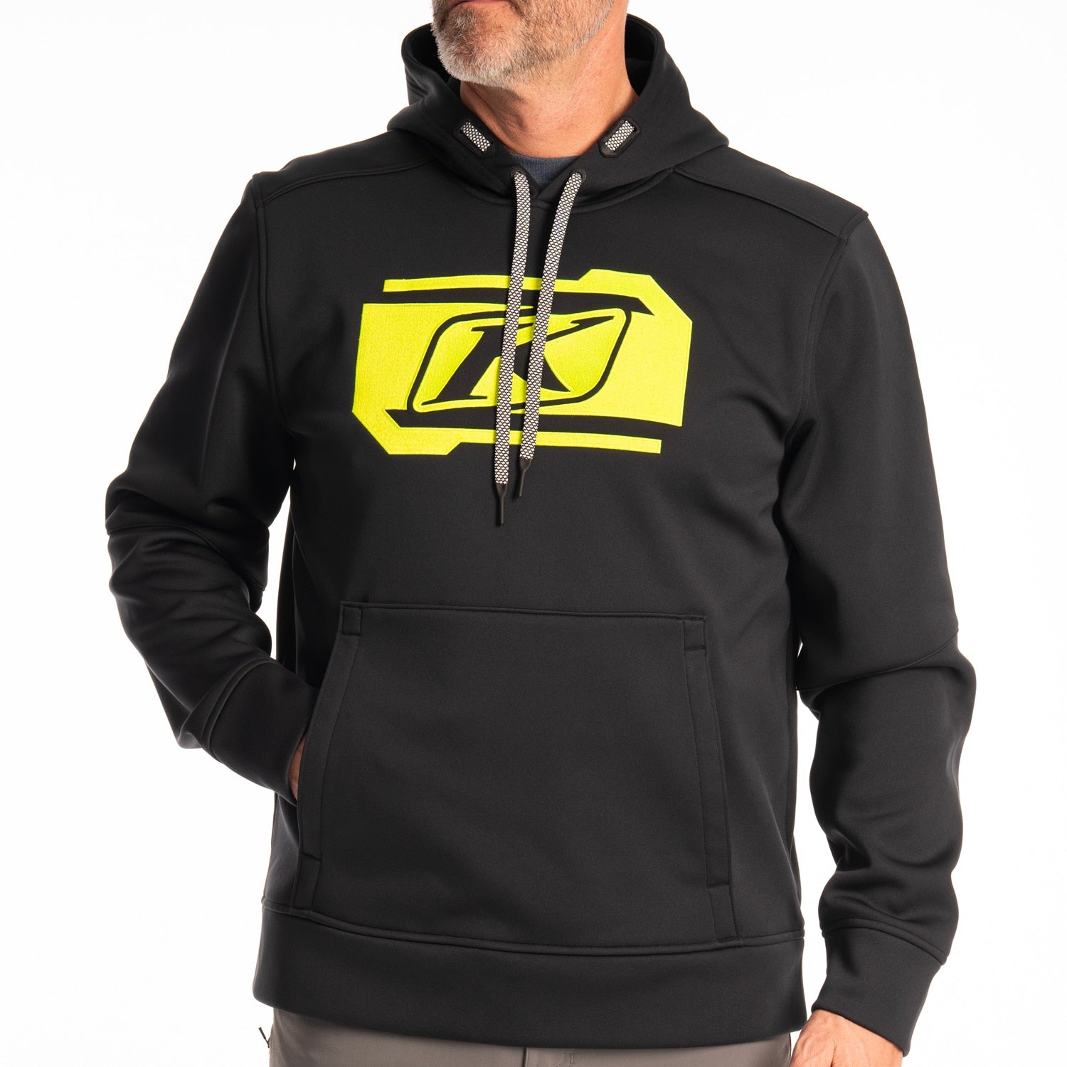 The polyester-bonded fleece Zone Pullover Hoodie ensures quick-drying performance and breathable warmth, complemented by a bonded brushed fleece backer for added comfort and warmth. Enjoy unrestricted freedom of movement with natural stretch and articulated sleeves. The pullover hoodie, featuring an adjustable, 3-panel drawcord hood, delivers for a customized fit and full coverage from wind, wet and cold conditions. The kangaroo front pocket provides warmth and convenient storage. A bold KLIM embroidered graphic makes a powersports statement.