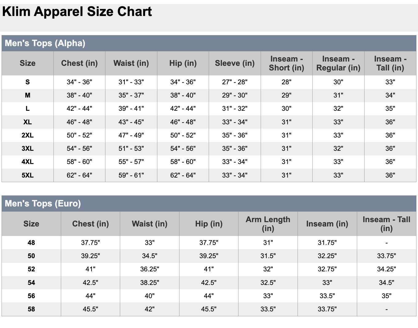 • For trim/European fit: Go one size smaller than the chart indicates