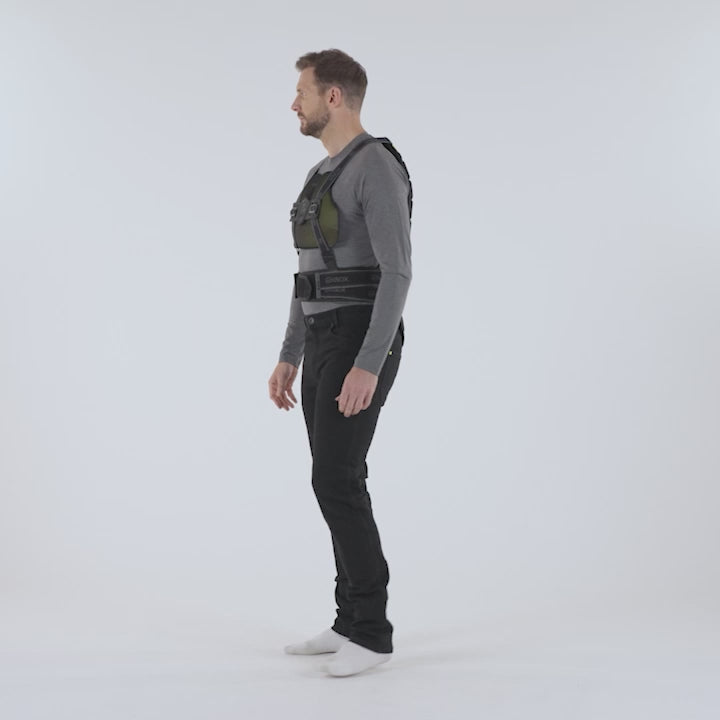 • Extra side adjustment straps give a more secure fit against the spine.